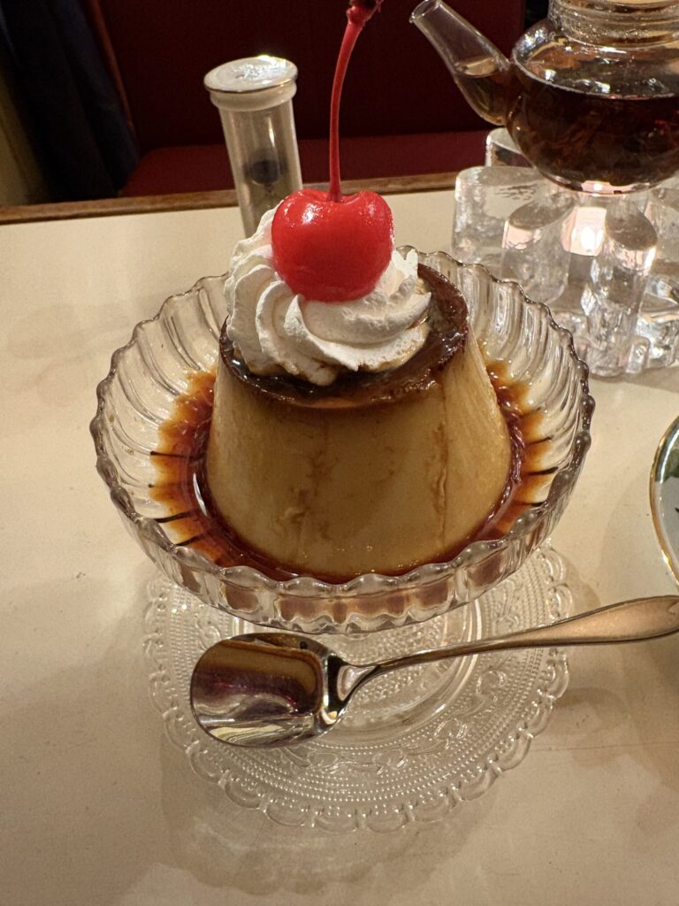 苦めのカラメルに合わせるなら、ブレンドコーヒーがベスト。甘さとほろ苦さのコントラストが何倍にも引き立ちます。私自身はコーヒーが飲めないので(頭痛がしてしまいます💧)「+自家製プリン」のセットが定番になりました。